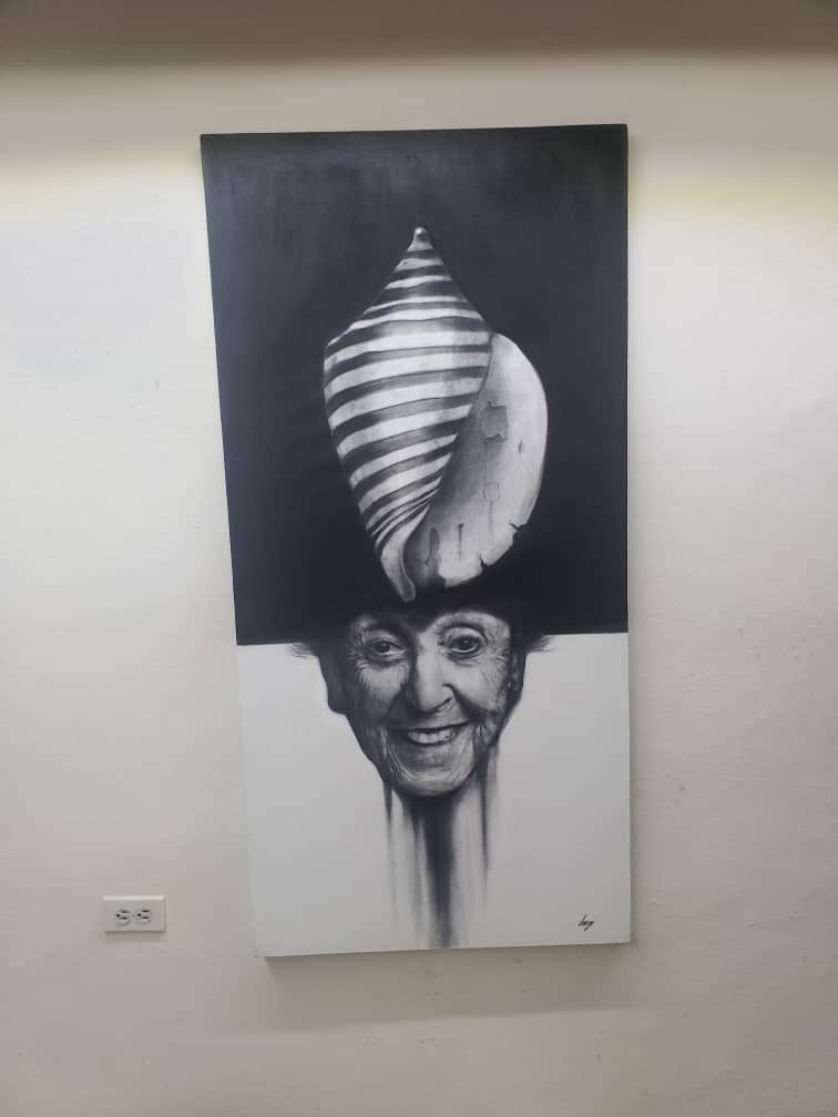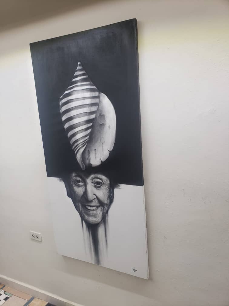 Description: The snail is a symbol of fertility in many cultures is considered as feminine energy of life and fertility. Contrasts with the face of an old woman who smiles at life.