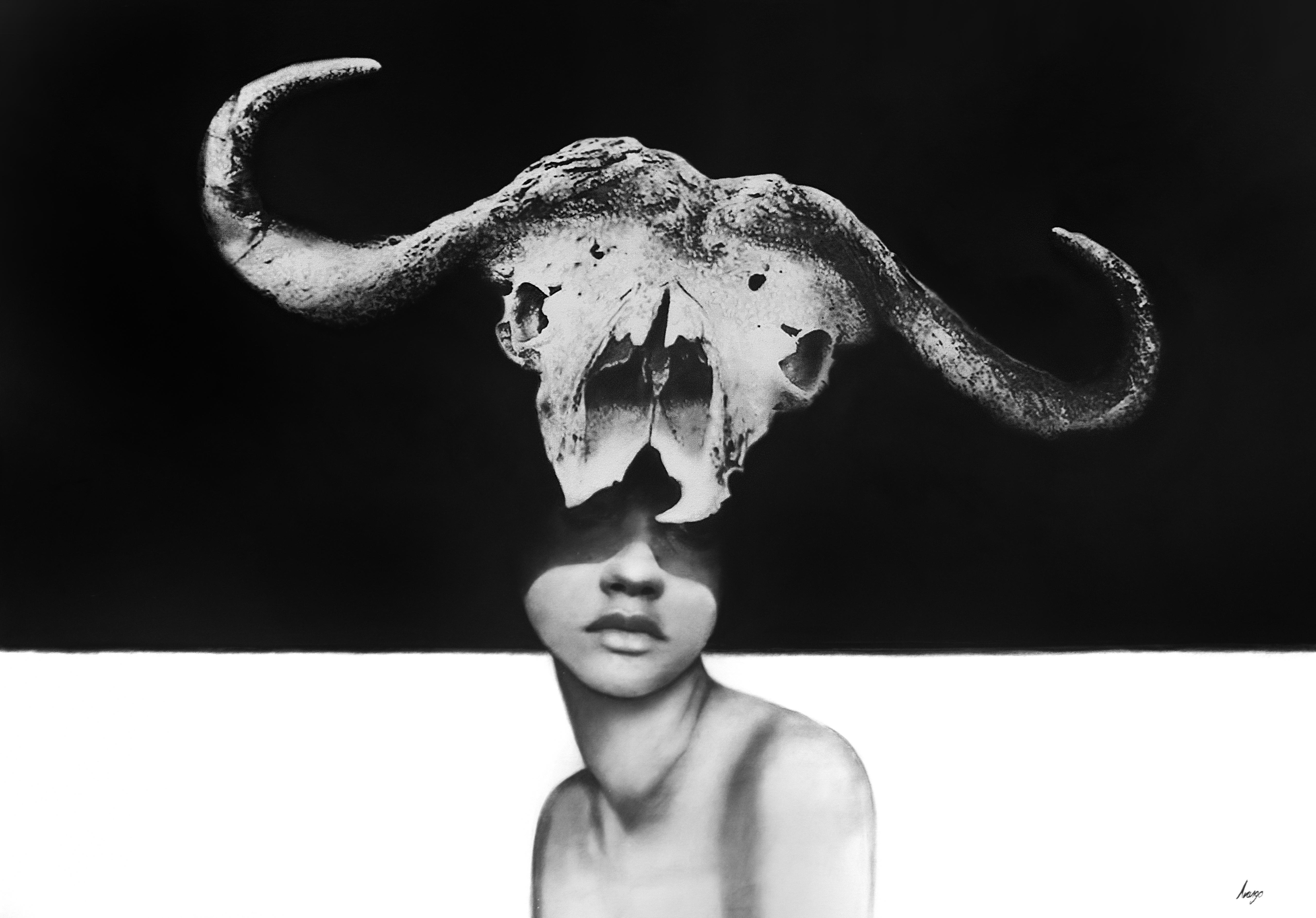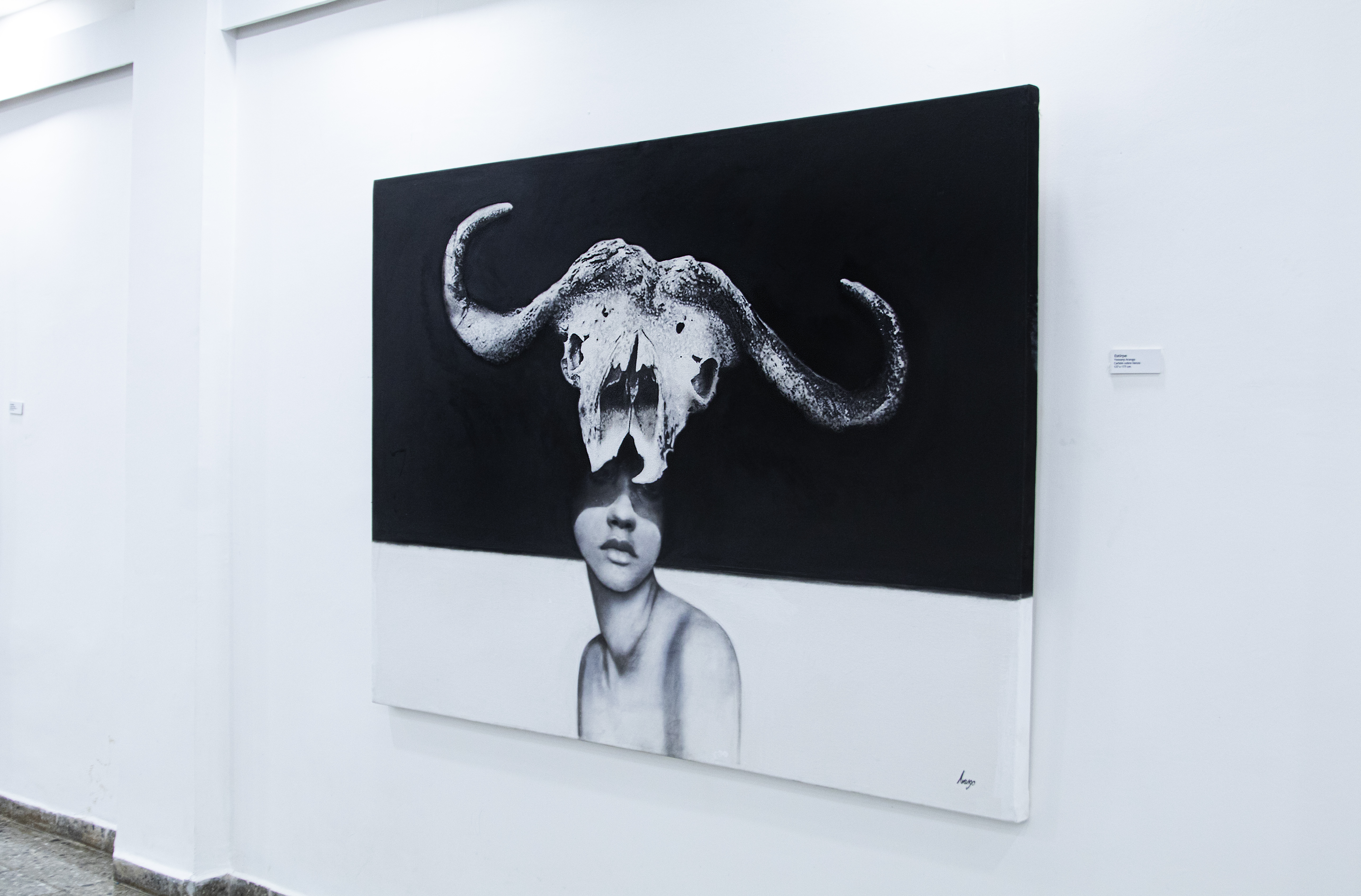 The painter Yosvany Arango addresses the genre of portrait from a social and philosophical perspective, with resources that escape from the perspectives of focus and conventional visual symbology Yosvany Arango improvises a parabolic relationship between the human figure and the mystical connotation of the animal, using inert, skeletal, and sculptural characteristics. He also uses in his painting, as an artifice denoting value, various planes of tension and contrast between black and white, light and darkness. Certainty and speculation, tradition, and novelty, are present with enough representative suspicion and aesthetic trickery. This artist in development has strong creative foundations. Art Curator: David Mateo, Mexico City, September 2022