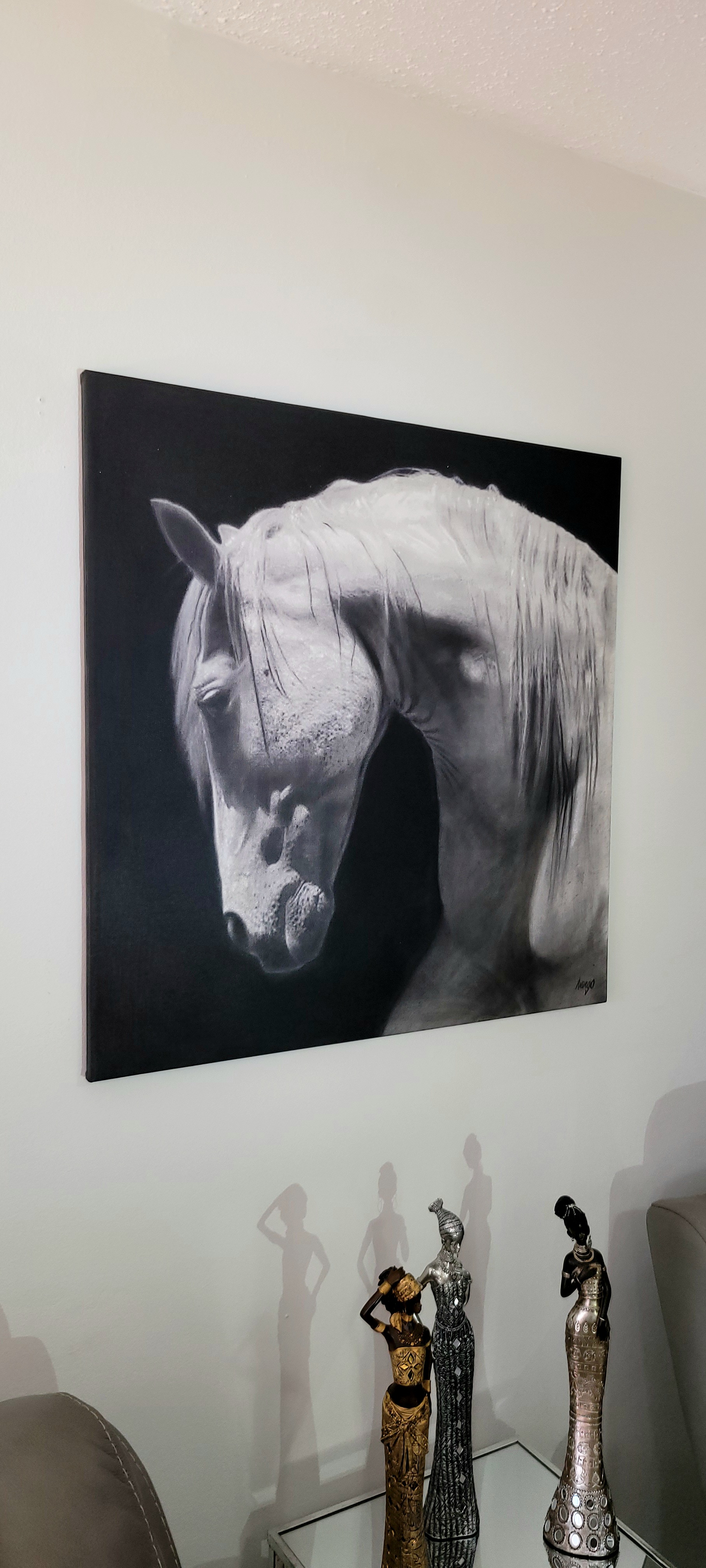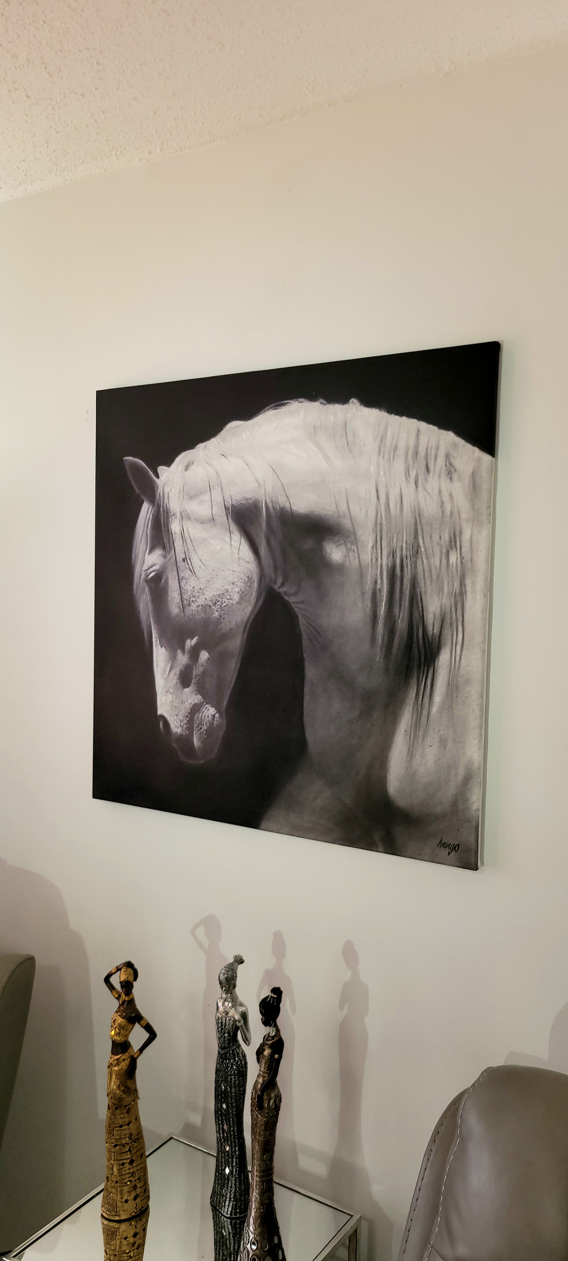 Painting will be shipped unmounted, and rolled up in a tube. If you can pick it up locally, you will receive it mounted on a stretcher. We can also arrange to have it framed before you pick up the painting, should you choose this option.