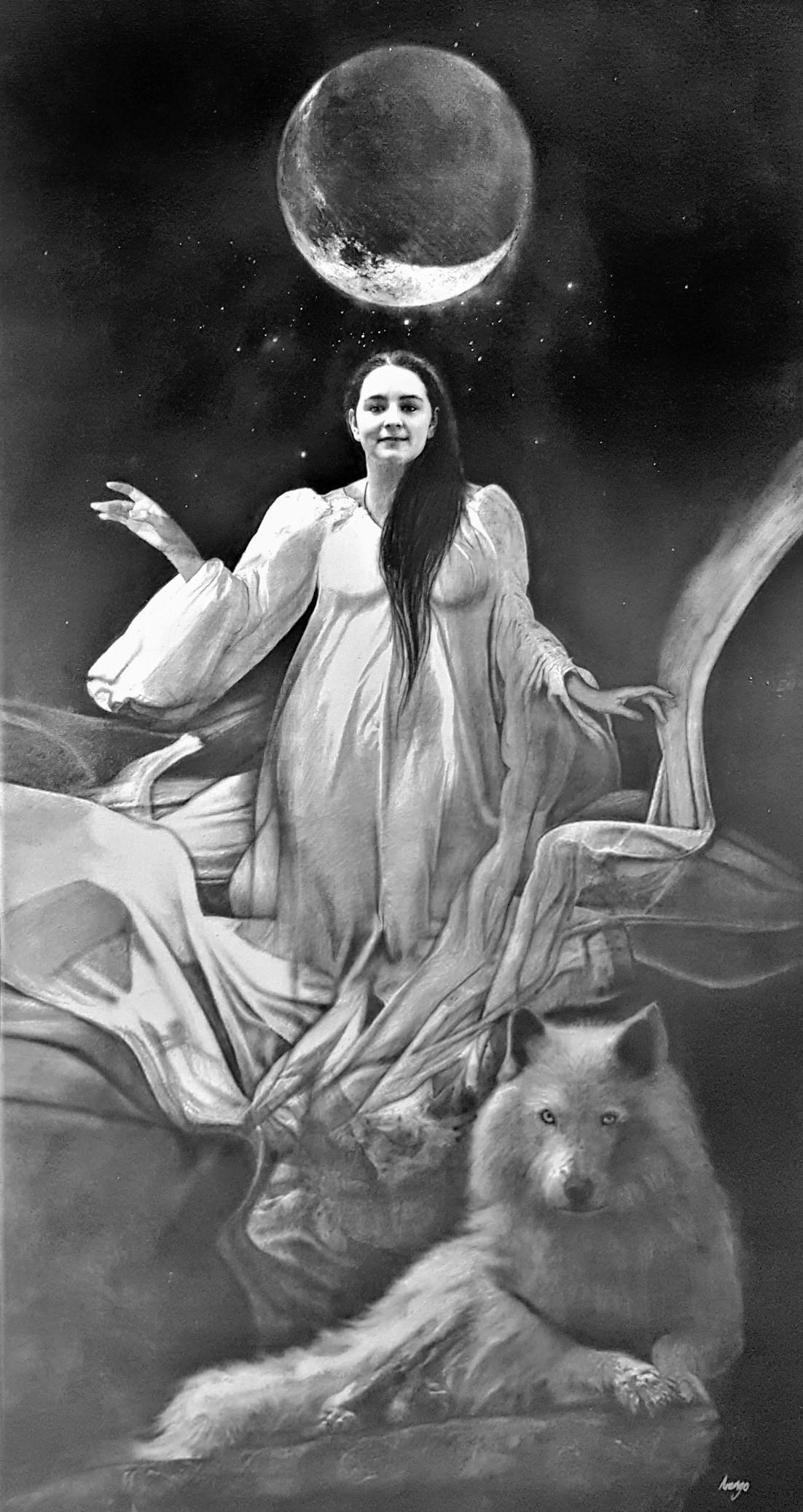 " Espiritu Lunar Gillian" Custom Portrait of Gillian Wolf, Donald Wolf daughter.