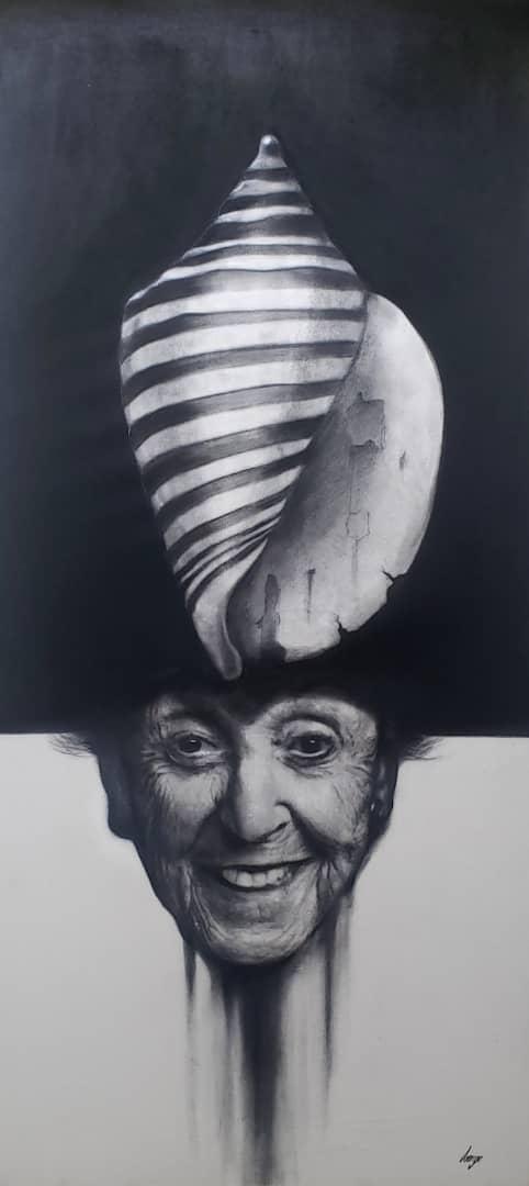 Description: The snail is a symbol of fertility in many cultures is considered as feminine energy of life and fertility. Contrasts with the face of an old woman who smiles at life.