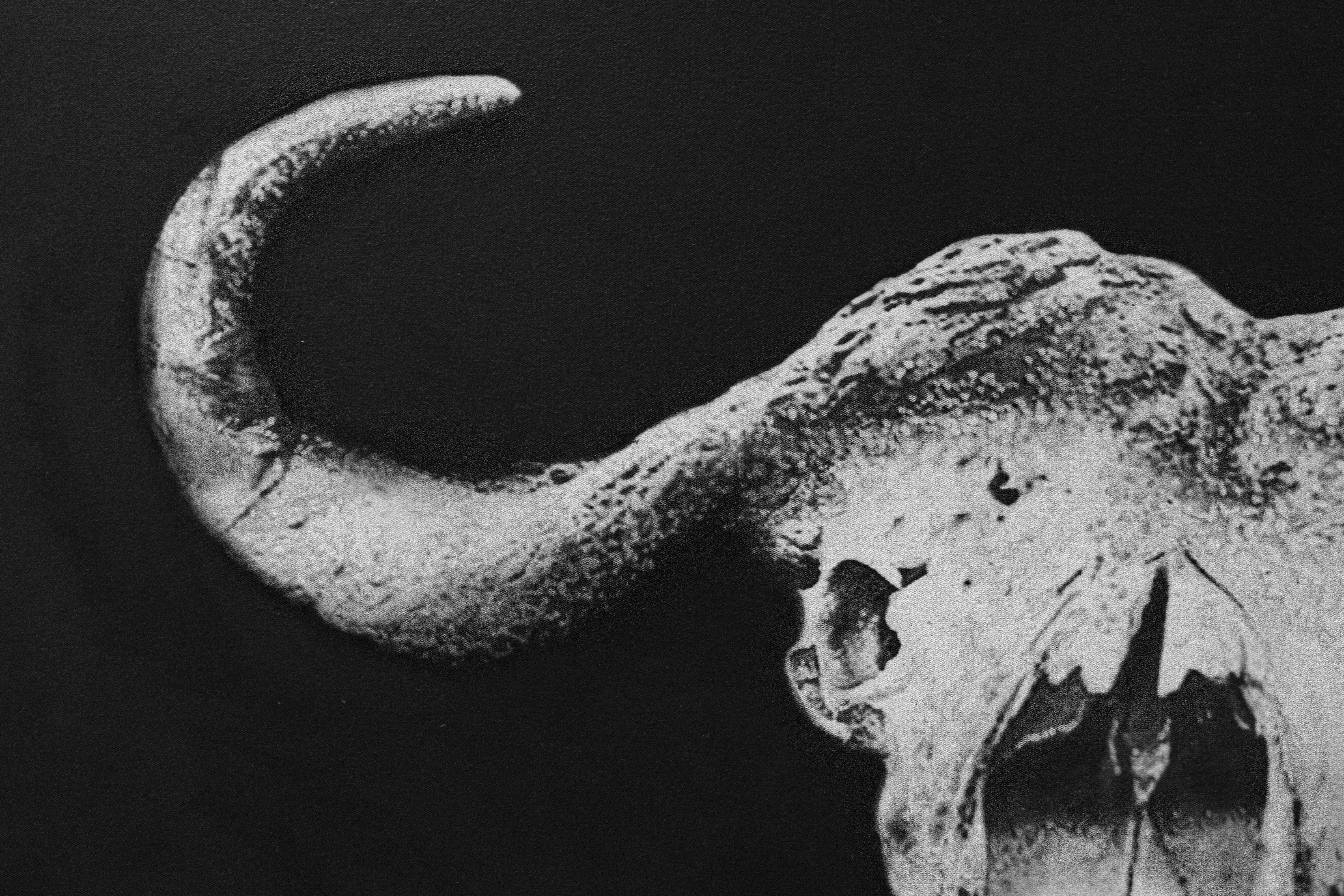 The painter Yosvany Arango addresses the genre of portrait from a social and philosophical perspective, with resources that escape from the perspectives of focus and conventional visual symbology Yosvany Arango improvises a parabolic relationship between the human figure and the mystical connotation of the animal, using inert, skeletal, and sculptural characteristics. He also uses in his painting, as an artifice denoting value, various planes of tension and contrast between black and white, light and darkness. Certainty and speculation, tradition, and novelty, are present with enough representative suspicion and aesthetic trickery. This artist in development has strong creative foundations. Art Curator: David Mateo, Mexico City, September 2022