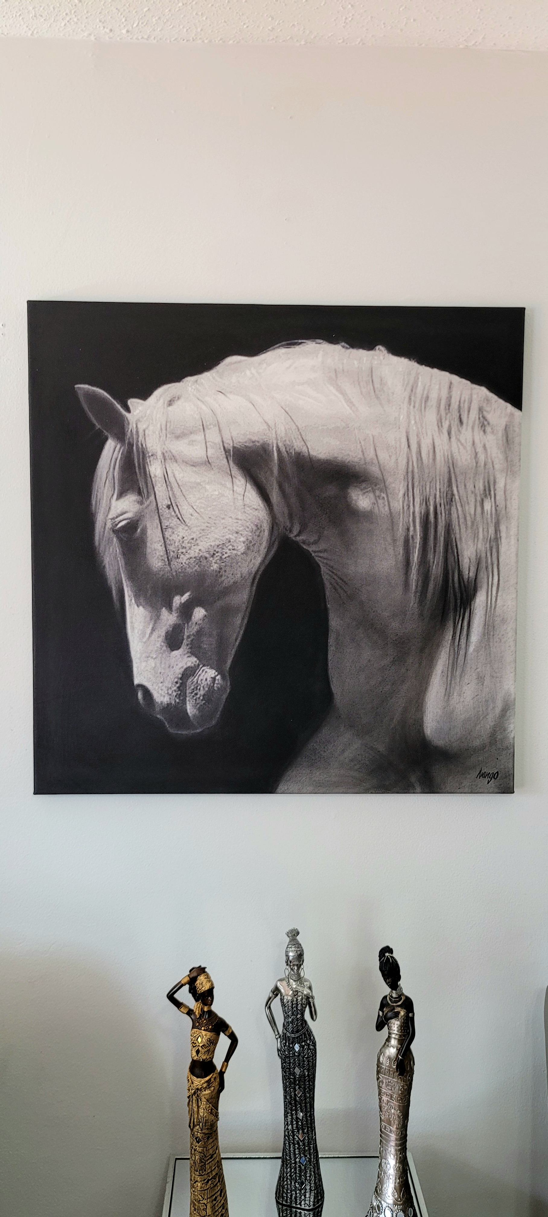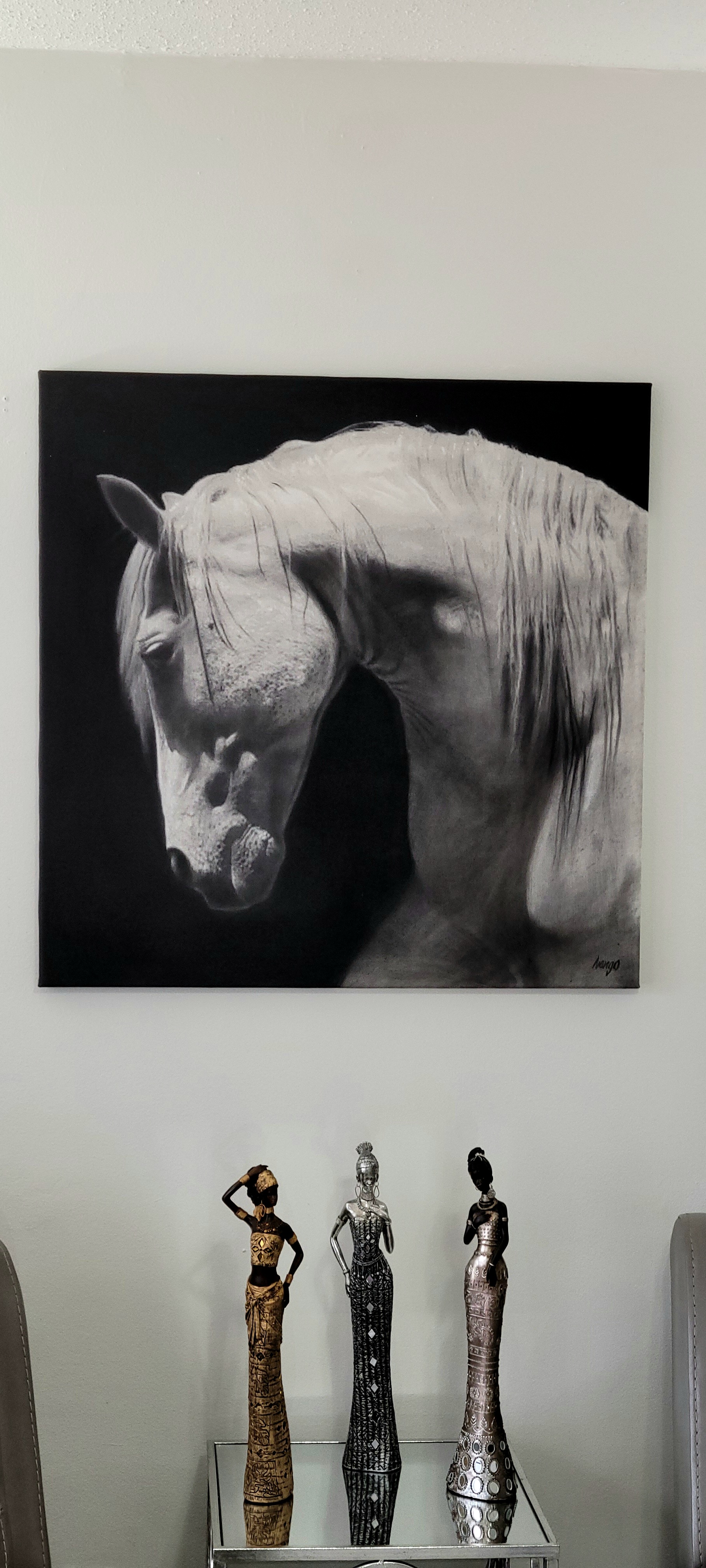 Painting will be shipped unmounted, and rolled up in a tube. If you can pick it up locally, you will receive it mounted on a stretcher. We can also arrange to have it framed before you pick up the painting, should you choose this option.